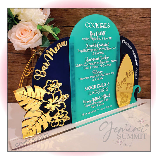 Tropical Luau Acrylic Bar Menu Sign