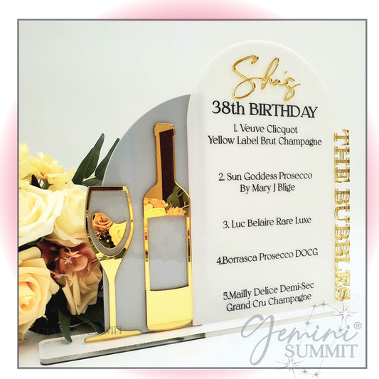 The Bubbles Champagne Bar Menu Sign